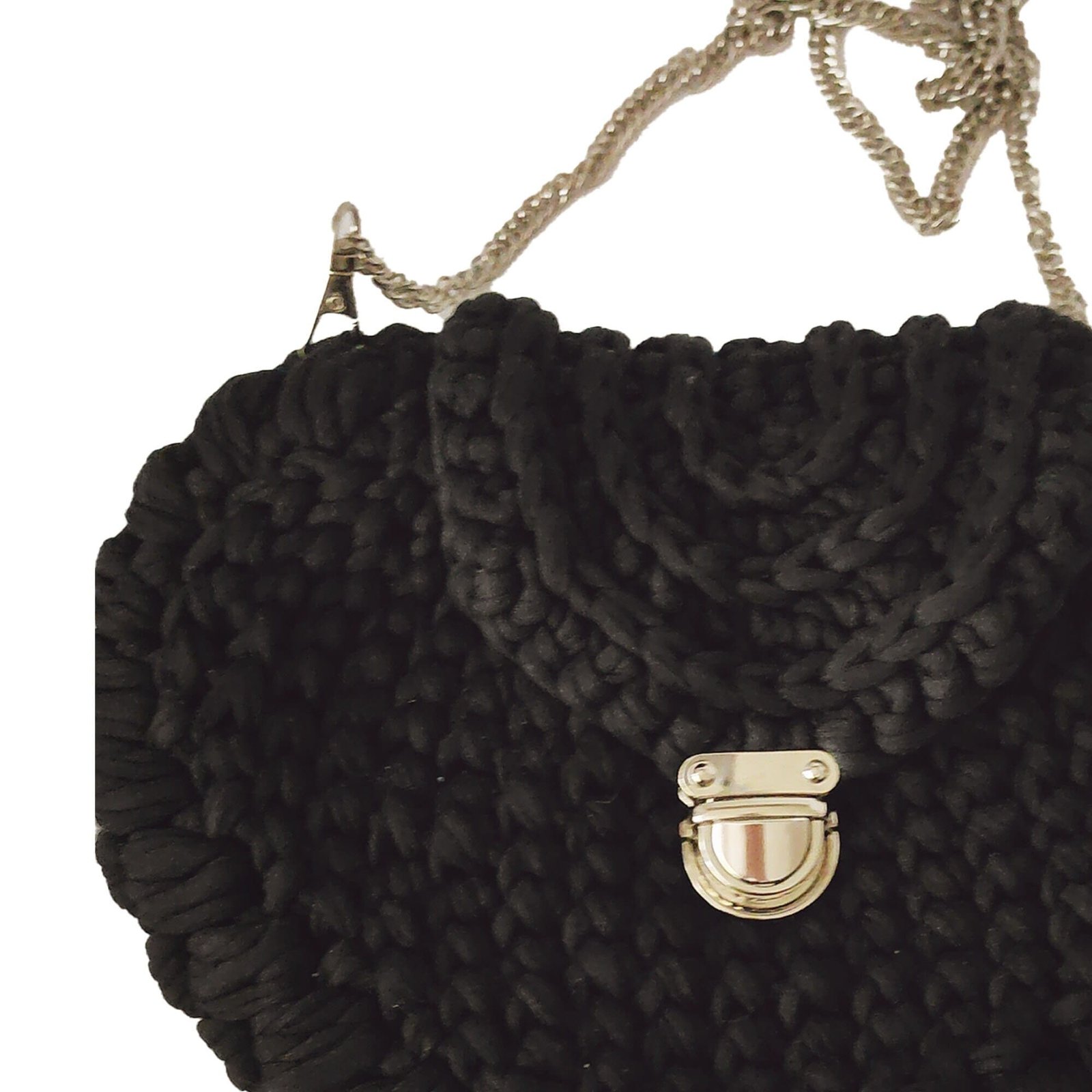Wunderbare gehäkelte, kleine Tasche, in Schwarz ist das perfekte Accessoire für Ihr Sommeroutfit.